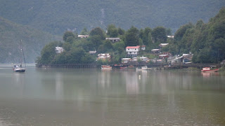 We had a tough journey into Cochrane (pronounced Cock-rainy), after lunch in pretty Puerto Bertrand, as the road rollercoastered sharply up then sharply down again with pretty loose terrain forcing us off our bikes for short pushes on a handful of occasions. Despite this we made good time but unfortunately it took it's toll on Pob's old knee injury so we decided to take a rest day. On our day off at Cochrane's Internet cafe (no wifi in town) we met a bunch of cyclists and worked out that there must be at least a dozen cycle tourers in town that day. We picked the brains of those travelling north about different route options to Ushuaia, and made arrangements to travel south the following day with Henry, a Londoner originally from Slovenia. The town itself is fairly small and nondescript, but it's population of around 3000 people makes it the southern hub of the Carretera Austral. The main highlight for us was the best ever Lomo a lo Pobre (which translates as either Poor man's steak or Pob's fave chilean steak dish) of large steak with 2 fried eggs, chips and fried onions at Ada's restaurant, just Northwest of the main plaza, if you're ever in the area...