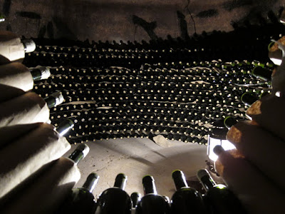 When harvesting, make sure the grapes don't burst because this would start fermentation. Warmer (and therefore faster) fermentation should be avoided unless you want cheap plonk. Many bodegas control fermenting temperatures with cellars, or refrigerated tanks but we visited one champagnery that ferments the grapes in a cave!